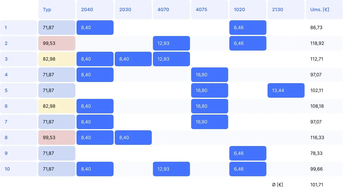 Durchschnittlicher Umsatz GOZ: 101,71 €